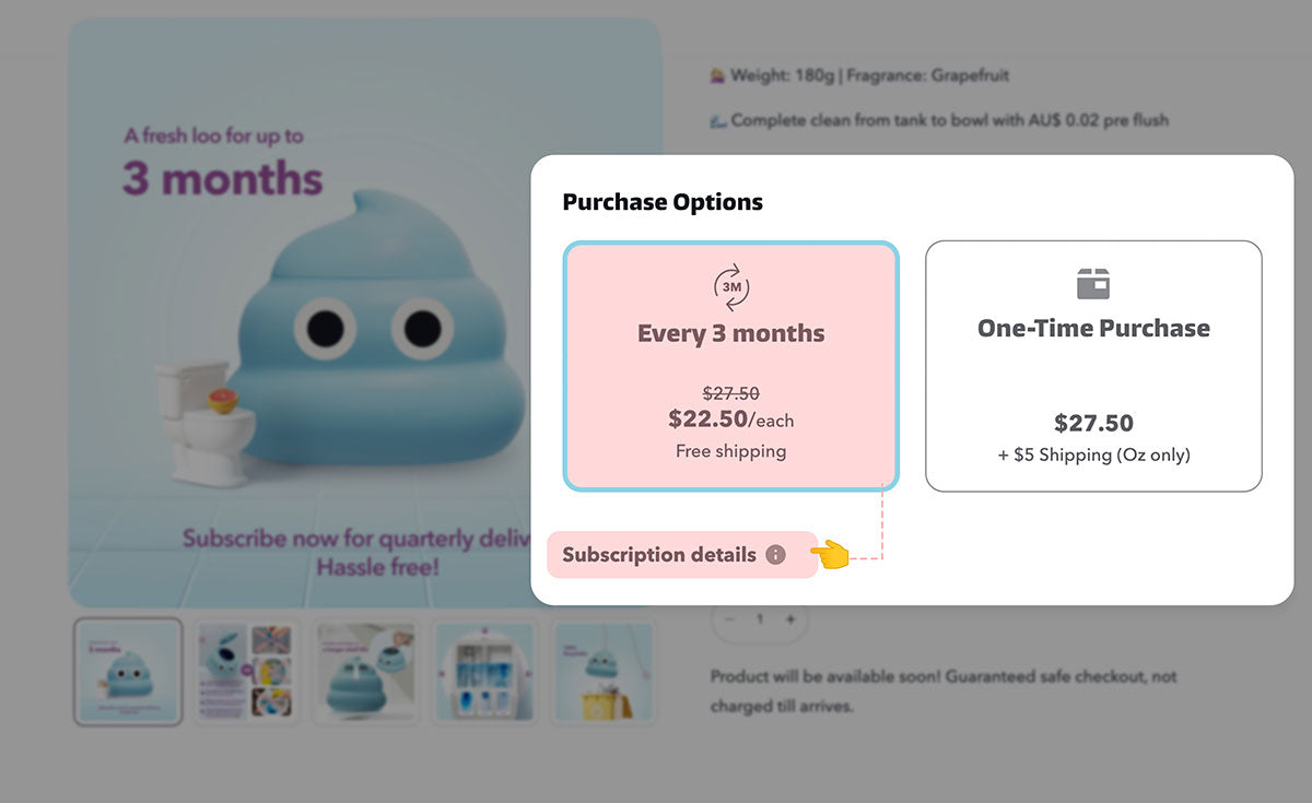Subscribing to Blop is a no-brainer! Save time and cash, plus get 27% off your first order and 10% off all future deliveries. Keep your loo fresh with less scrubbing, more relaxing!